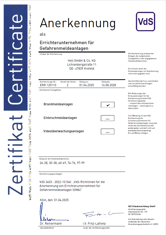 An dieser Stelle finden Sie Zertifikate für das Informationssicherheitsmanagementsystem ISO 27001:2017, das Qualitätsmanagementsystem ISO 9001:2015, die Anerkennung als Fachfirma für Brandmeldeanlagen gemäß DIN 14675, die Anerkennung als Errichterunternehmen für Gefahrenmeldeanlagen, die Anerkennung für den Explosionsschutz nach ATEX und außerdem die Anerkennung als Fachbetrieb gemäß Wasserhaushaltsgesetz. Außerdem sind wir zertifizierter Janitza Solution Partner, Siemens Solution Partner im Bereich Automation Drives und SIVACON Technology Partner.